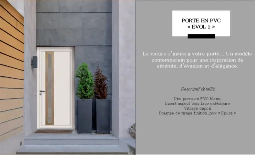 16ᵉ case du Calendrier de l’Avent Prêt(e) à booster l’entrée de votre maison ?   Aujourd’hui, focus sur la porte PVC “Evol 1” : moderne, performante… et 100 % personnalisable…